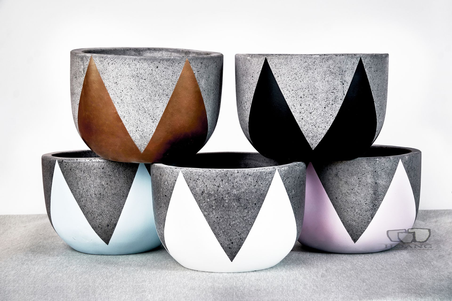 These days, the cement pots have diverse design styles with different sizes which are able to suit many kinds of decoration and the requirements of customers. There are 4 basic shapes of cement pots: