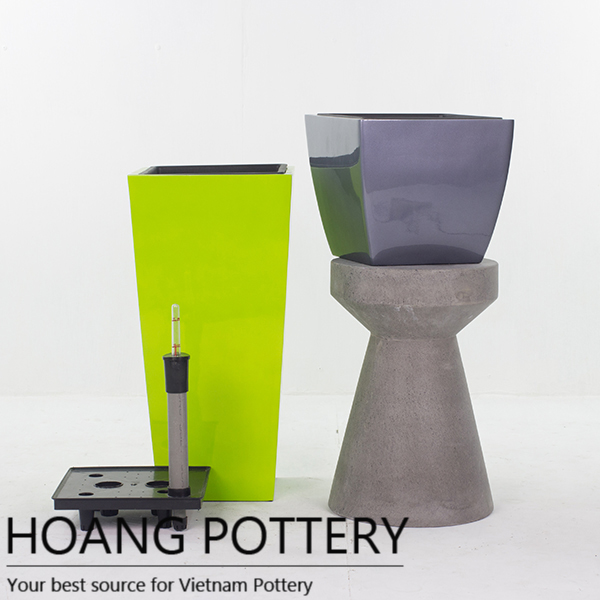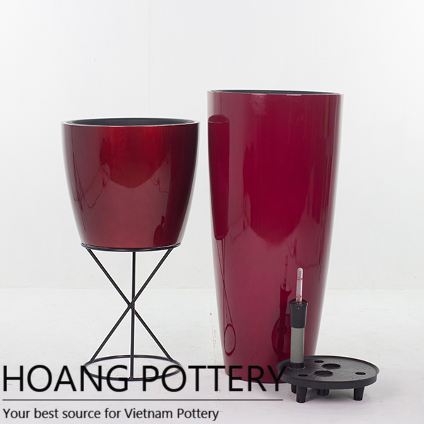 Fiberglass planters are long-lasting planters made from a durable, lightweight material that can be made to look like wood, stone, and other materials. Fiberglass/fibreglass is a composite material made from resin/plastic re-inforced with fine fibers of glass. This type of material is very strong and durable with the bonus advantage of being very lightweight. Fiberglass is also non-porous and retains moisture so that it can withstand the heat better than other materials. In addition, due to the absence of stone powder, the surfaces of these planters are very glossy and smooth with the bright painted colors that are also very beautiful and durable, can withstand harsh conditions (rain, UV rays ...) so these planters can be used for many years.