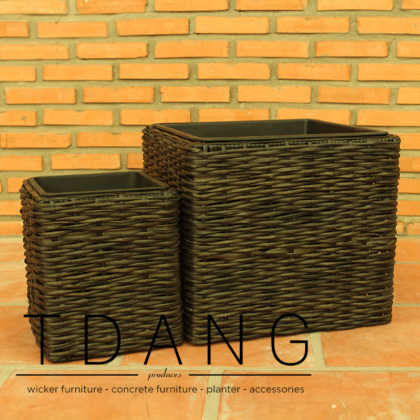 2 Piece Square Wicker Assorted Size Planter Set (TDW042)
