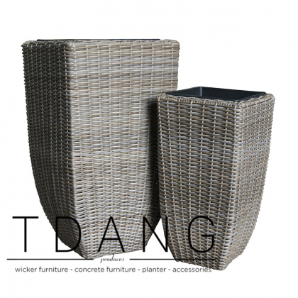 2 Piece Tall Square Flat Wicker Pot Set (TDW056)