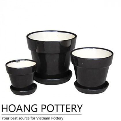 Black Ceramic Bonsai Pot with Saucer (HPIP001)