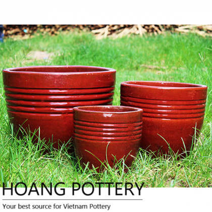 Ceramic Round Red Pots with Rings Pattern (HPVN005)