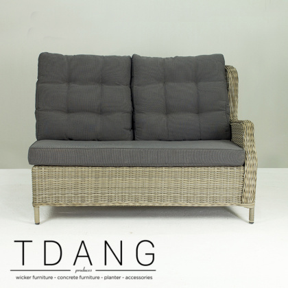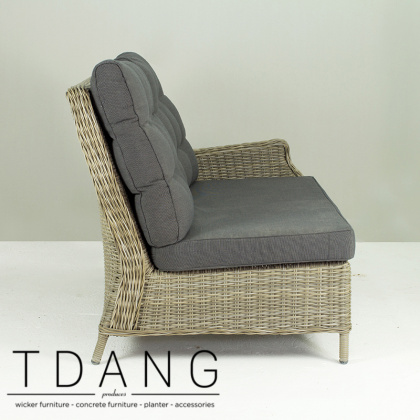 The Hanna Wicker Sofa Left Hand with black cushions offers both contemporary design and durability. This sofa is primarily intended for outdoor purposes but can also be used indoors giving your home a modern touch. Durable and elegant design is a key component of this sofa.