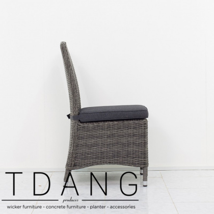 The Palisades Wicker Dining Side Chair for the "sunny side" of a mountain or valley, provides a rich, dark chocolate weave that is clean, elegant, and sophisticated. Fully welded, powder coated aluminum frames provide both strength and longevity; and all PE resin wicker that is hand selected to ensure color fastness and durability.