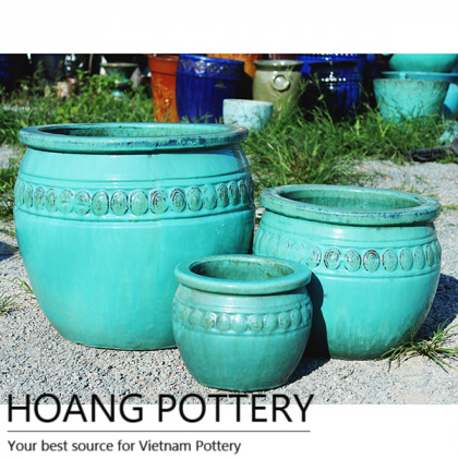 Round Aqua Green Glazed Ceramic Planters (HPPN017)