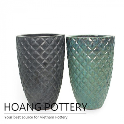 Tall round diamond pot for outdoor are handcrafted with a variety of designs such as round, square, oval, hexagonal ... The enamel material is manually baked completely according to a special process to ensure the hardness, smoothness and gloss. In particular, the chemical resistance of the enamel helps to protect against the destruction of the environment such as acid corrosion of rainwater and withstands frequent cleaning.Tall round diamond pot for outdoor are not only diverse in style but also in color, so customers have more choices for their space.