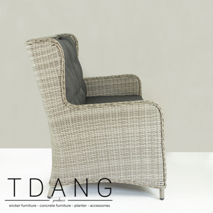 The Creative Trieste Wicker Sofa with Cushions can be used in the living room and on the patio. It has a contemporary style that enhances the look of the decor.