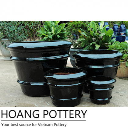 Vietnamese Black Glazed Ceramic Pot Outdoor (HPDB011)